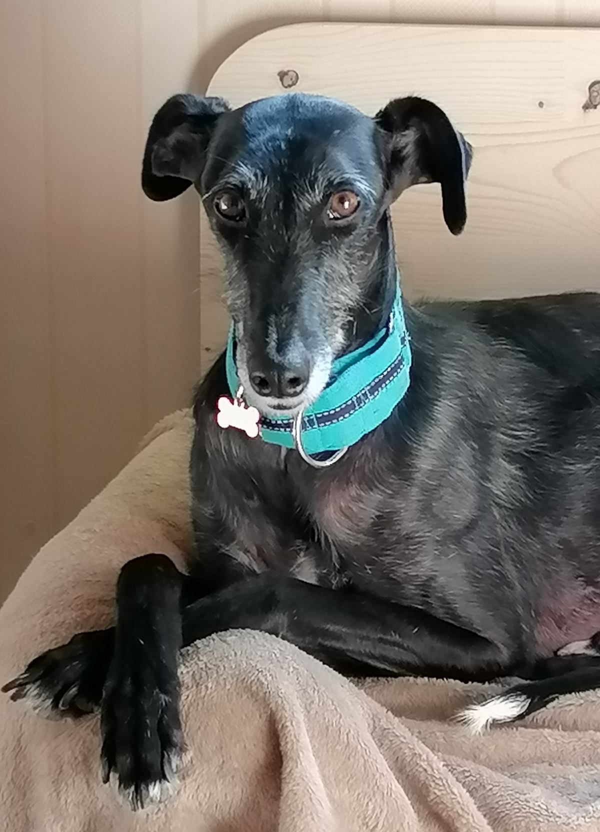 Bonjour ! Je m’appelle Kalem. Je suis un galgo de petite taille arrivé en France le 4 décembre 2021. C’était le hasard qui m’a amené dans ma famille d’accueil, car comme ma sœur, j’étais destiné à aller en Allemagne quand la voiture du refuge est tombée en panne lors de l’escale pour déposer plusieurs congénères pour Ayuda. Et puisque la voiture de remplacement était trop petite pour moi, j’ai dû laisser partir ma sœur. Heureusement, Ayuda avait la gentillesse de prendre soin de moi.
